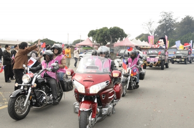 2011-12-24 立法委員候選人3號徐欣瑩愛國‧愛鄉‧愛人民 號召義工「送國旗到家」超炫重機車隊加入 展開全縣大遊行 新竹縣立法委員候選人③號徐欣瑩博士12月24日(星期六)上午8點 半,於新豐鄉池和宮前舉辦「送國旗到家活動」與全縣車隊大遊行誓師記者會,新竹縣長邱鏡淳、議長陳見賢、中國國民黨新竹縣黨部主委張逸華、新豐鄉鄉長徐茂 淦、鄉代會主席許秋澤等多位貴賓均到場共襄盛舉。現場除了共同遊行、挨家挨戶發國旗的義工群之外,更有一組由支持者組成的超炫重機車隊一起加入大遊行的行 列,與裝飾著聖誕樹、載著公仔們的遊行車隊前後呼應,浩浩蕩蕩、熱鬧非凡。