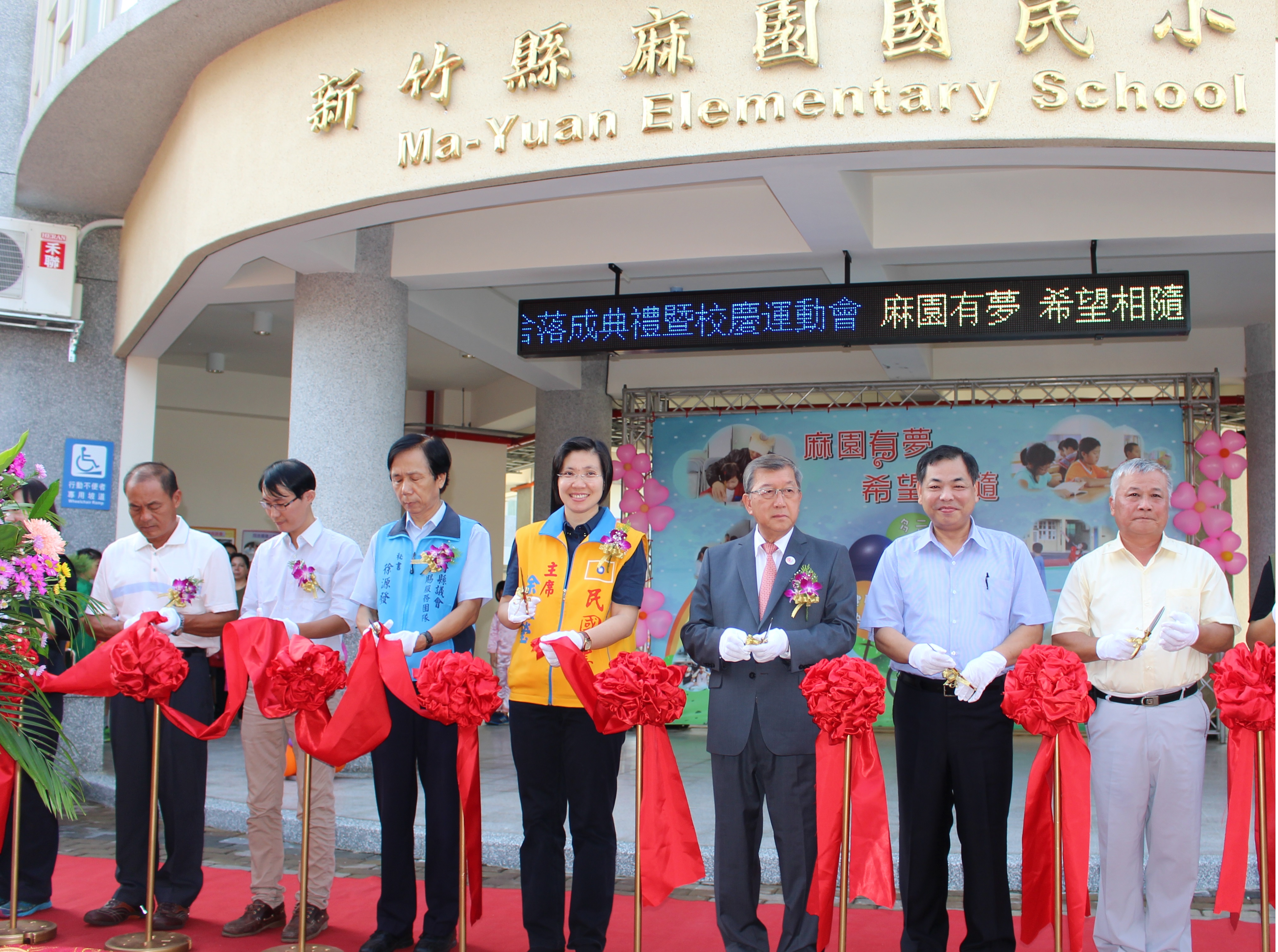 爭取中央補助 徐欣瑩受邀麻園國小校舍拆除重建啟用典禮 [2016-10-22 民國黨主席徐欣瑩辦公室] 歷經半世紀的新竹縣麻園國小學,校舍老舊危樓,經過兩年半的拆除重建,今天上午舉辦落成典禮暨校慶活動。前立法委員、現任民國黨主席徐欣瑩受邀參加剪綵。這是徐欣瑩在立委任內,為了讓學子在安全的環境受教,並且平衡城鄉發展,爭取到交育部補助2348萬元重建經費,提升偏鄉教育資源。 竹北市麻園國小於102年六月進行校舍耐震補強工程,開挖後竟發現整個建築是無地梁結構的危樓,且鋼筋鏽蝕嚴重,當時緊急將全校師生疏散到鄰近的小學就讀。由於重建經費龐大沒有著落,徐欣瑩立即在102/10/29日邀請教育部國民及學前教育署副署長黃子騰下鄉會勘,並爭取到教育部2348萬補助經費,整體校舍重建及操場改善工程,總經費近5700萬元。 徐欣瑩表示,竹北市東西發展不平衡,不少家長將孩子送到竹北市東區就讀,因此爭取中央經費協助麻園提升軟硬體設施設備,除提供一個安全的學習環境,希望煥然一新的學校,讓學生留在社區,發展地方特色。落成典禮在小朋友清亮的歌聲與輕快的演奏中,大家以歡喜的心迎接嶄新的學習環境。 [相關新聞] .2014-05-29 [聯合報] 整建經費有了 麻園國小學生 明年重回校園 .2013-10-30 [聯合報] 麻園國小重建 教育部允協助 .2013-10-30 [自由時報] 麻園國小重建 寄望中央金援 .2013-10-29 [新竹新聞] 徐欣瑩會勘麻園國小無地梁危樓