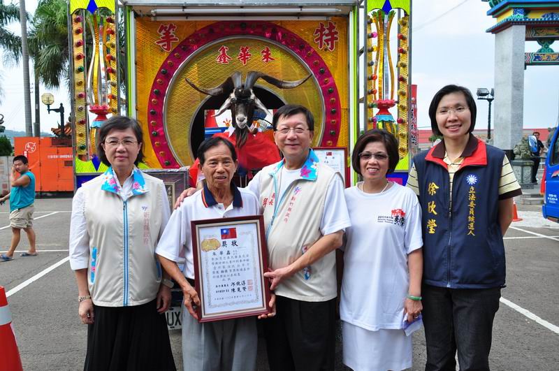 徐欣瑩出席義民祭神豬賽 祈求國泰民安 [2011-08-19 新竹縣議員徐欣瑩新聞稿] 新埔褒忠亭義民祭典今天進入最高潮,廟前廣場前從特等到30等神豬一字排開,而閃亮的花車與神羊更吸引民眾前往欣賞,場面相當熱烈。縣長邱鏡淳也特別準備2700斤白米、1200包米粉做的米神豬做公益,一同共襄盛舉,並分送世光教養院與長安養護中心,發揚義民精神。 義民廟前廣場循古禮豎燈篙,招引各方孤魂野鬼,共同享用義民廟準備的豐盛祭品,邱縣長、副縣長章仁香上午率縣府一級主管,先至義民廟上香參拜,祈求國泰民安,後與縣議員徐欣瑩一同頒發獎狀肯定賽神豬得獎人,當中,縣議員陳英樓飼養的神豬獲得第柒等,大家特別前往恭賀。邱縣長表示,配合義民祭精神,縣府特別製作米神豬參拜,除祈求義民爺保佑外,更希望推動捐白米、做公益精神,回饋社會。上午義民廟前湧入近兩萬人之多,祭拜的、攝影的、參觀的人潮四面八方前來朝聖。而放在義民廟廣場前30等神豬下午時間移回信眾家中,晚間宴客時將分送給親朋好友,保佑一整年順順利利。  | | 徐欣瑩與參觀民眾 |  | | 徐欣瑩與熱情民眾 |  | | 米粉神豬 |  | | 伍等神豬 |  | | 魏政芳爐主神豬 |  | | 特等神羊 | |