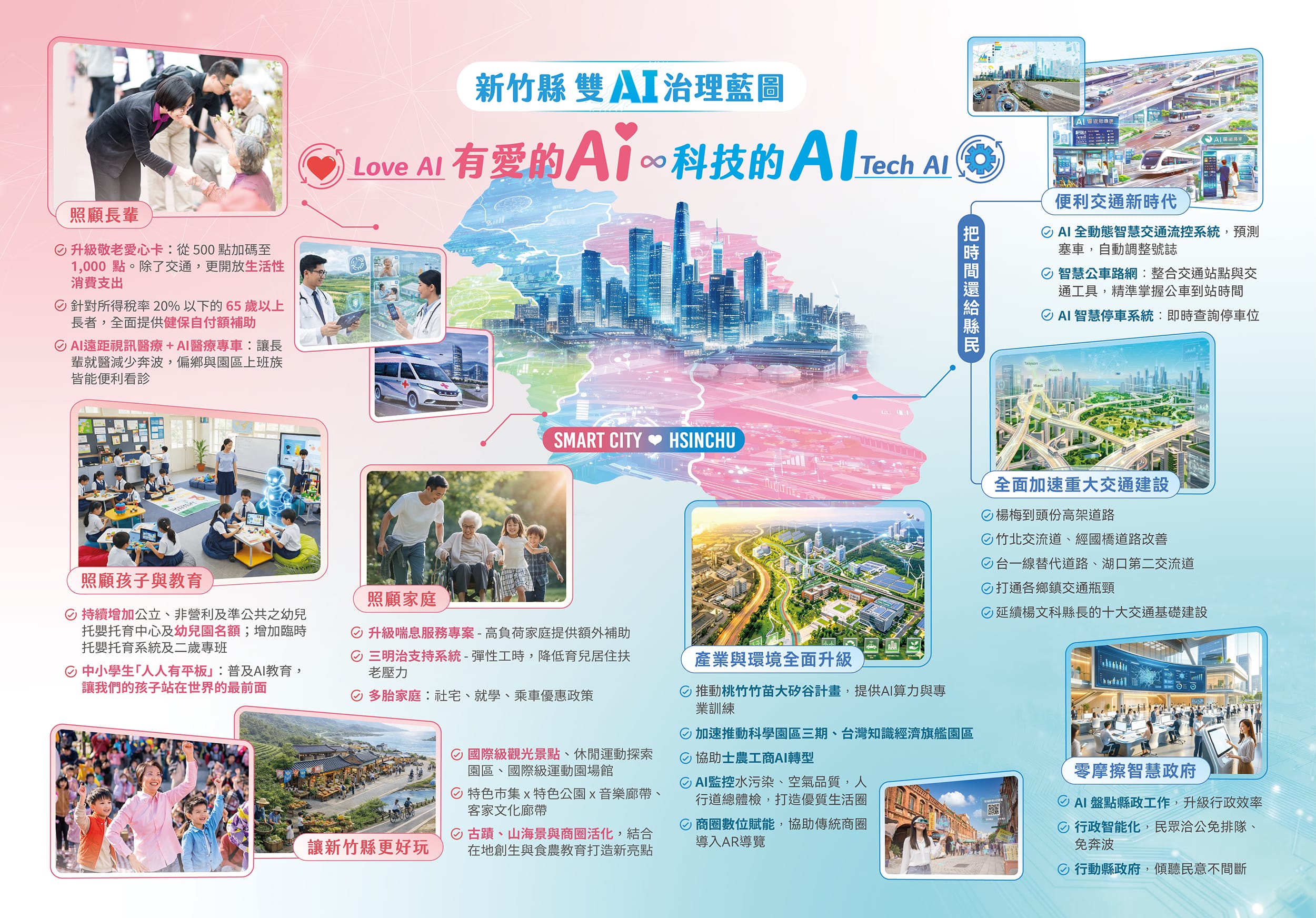 - 為增加新竹縣建設經費,向中央爭取優先分配高鐵結餘款8億建設地方。