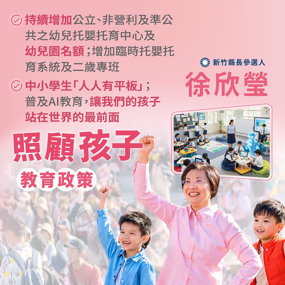 爭取教育部同意設立六家高中、東興與興隆國小建校經費1億、安興國小與東興國中建校經費1億1千萬、麻園國小全校改建2348萬、竹北高中特色教育經費爭取、鳳岡國中老舊校舍改建、各中小學改善與充實教學設備等經費。